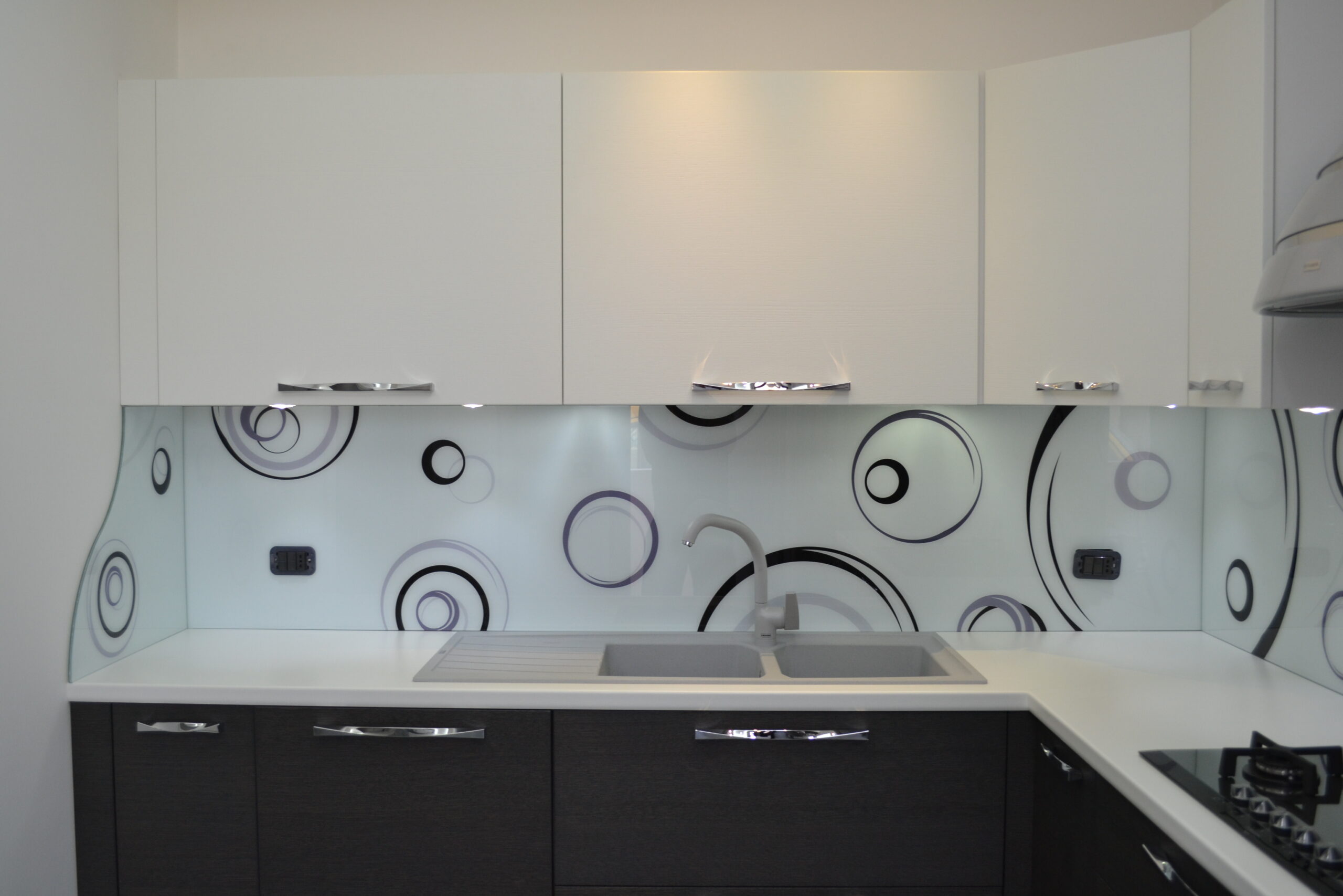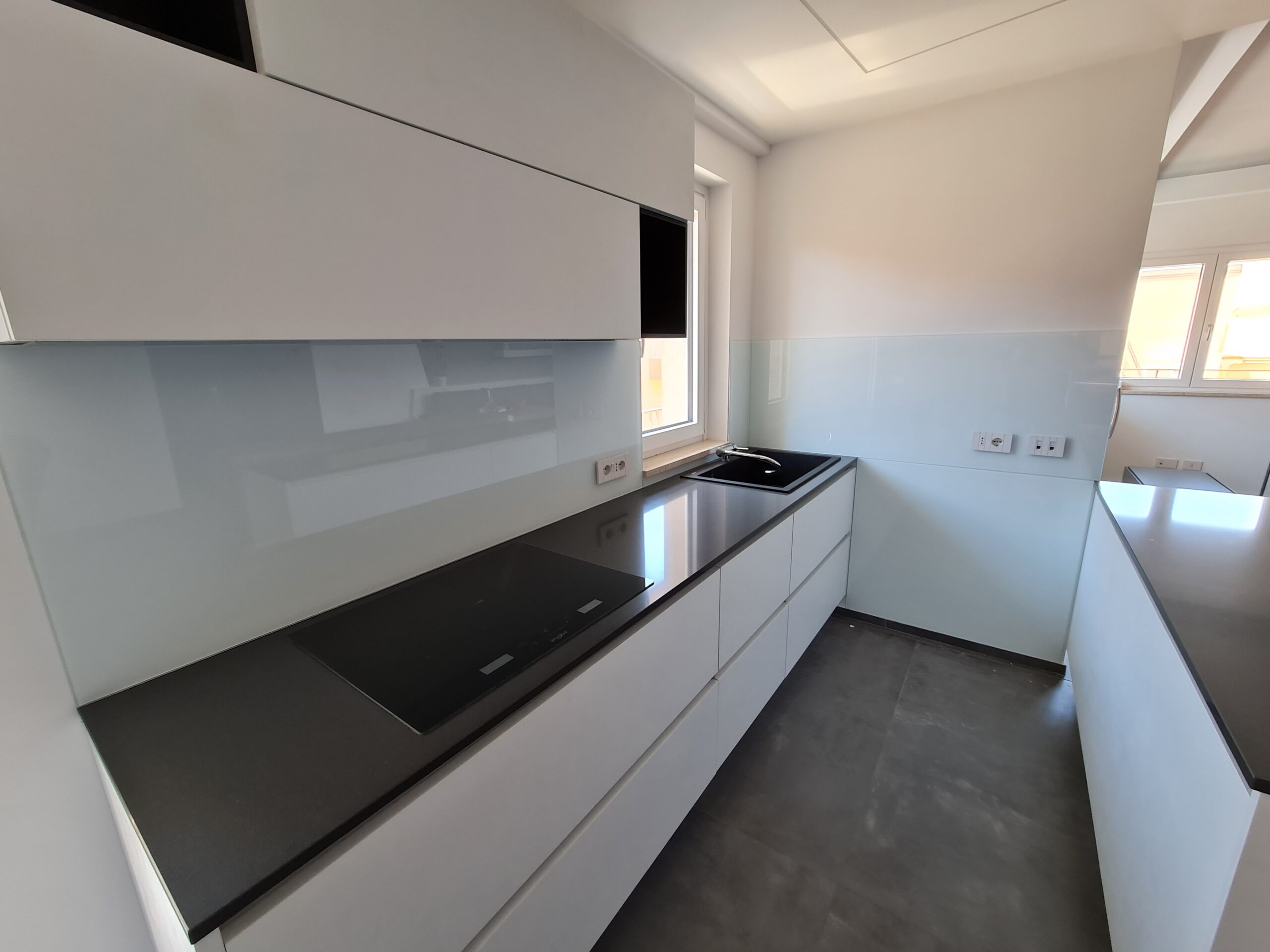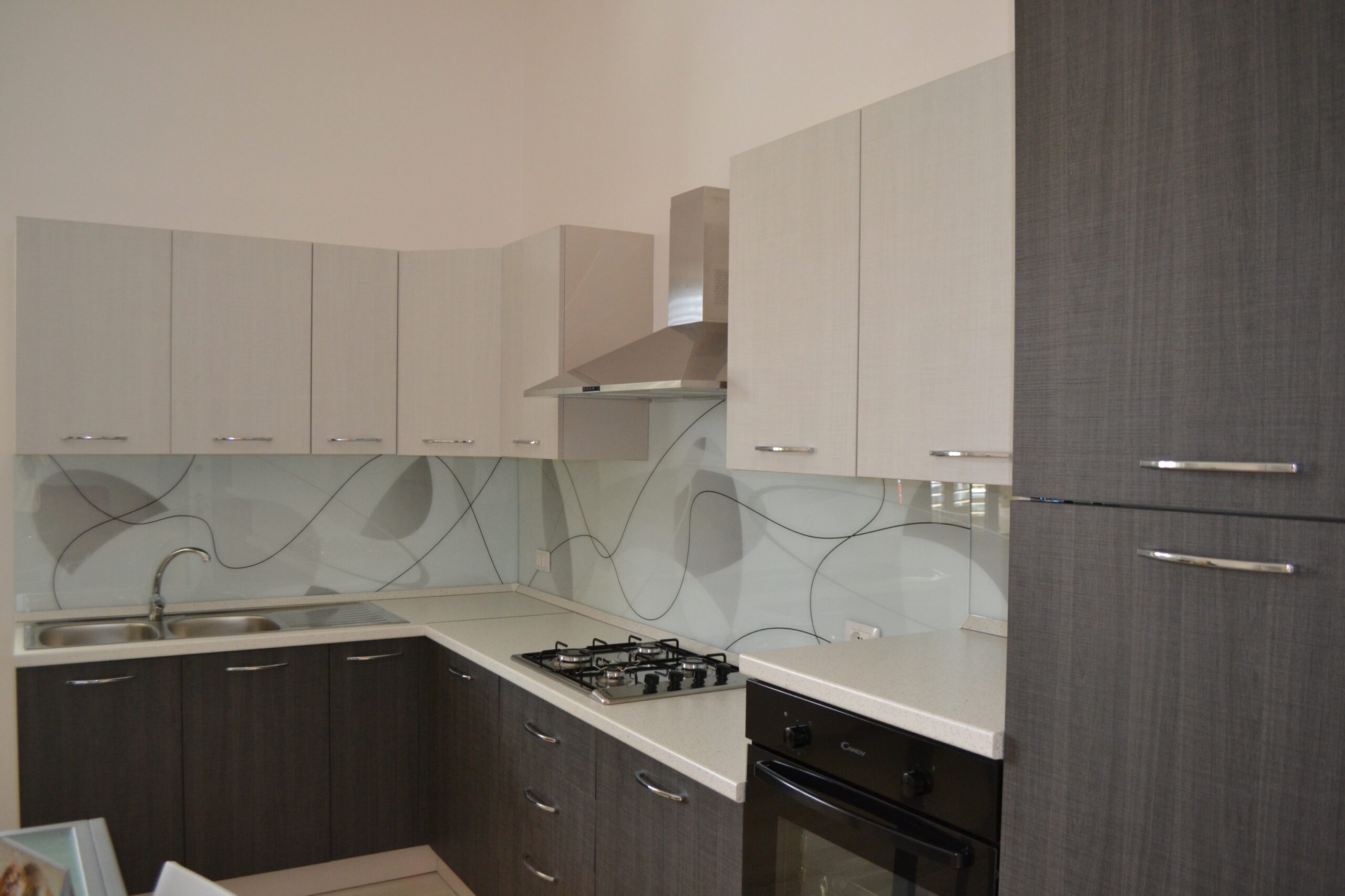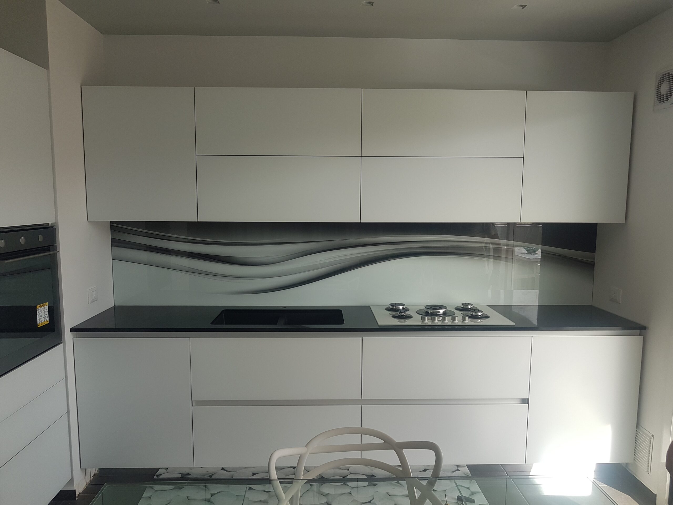 I rivestimenti in vetro temperato si distinguono per la loro superficie uniforme e senza fughe, che garantisce massima igiene e facilità di pulizia. Sono resistenti al calore e, soprattutto, completamente personalizzabili. Ogni pannello può essere sagomato su misura in base alla configurazione della tua cucina, integrandosi perfettamente con spazi, prese e piani di lavoro.