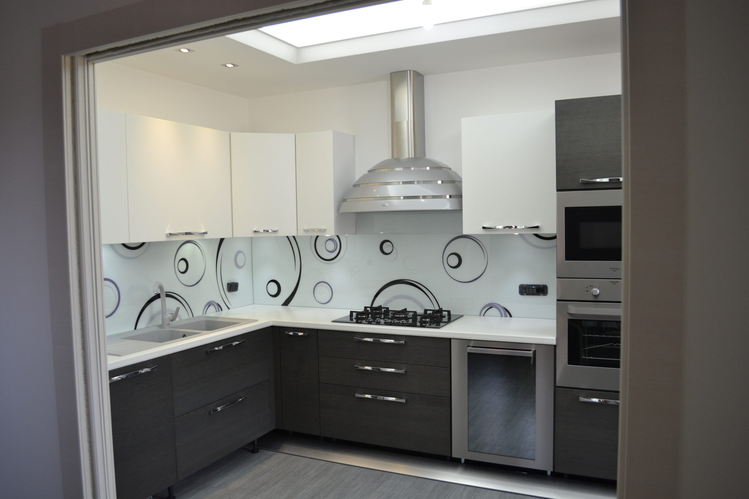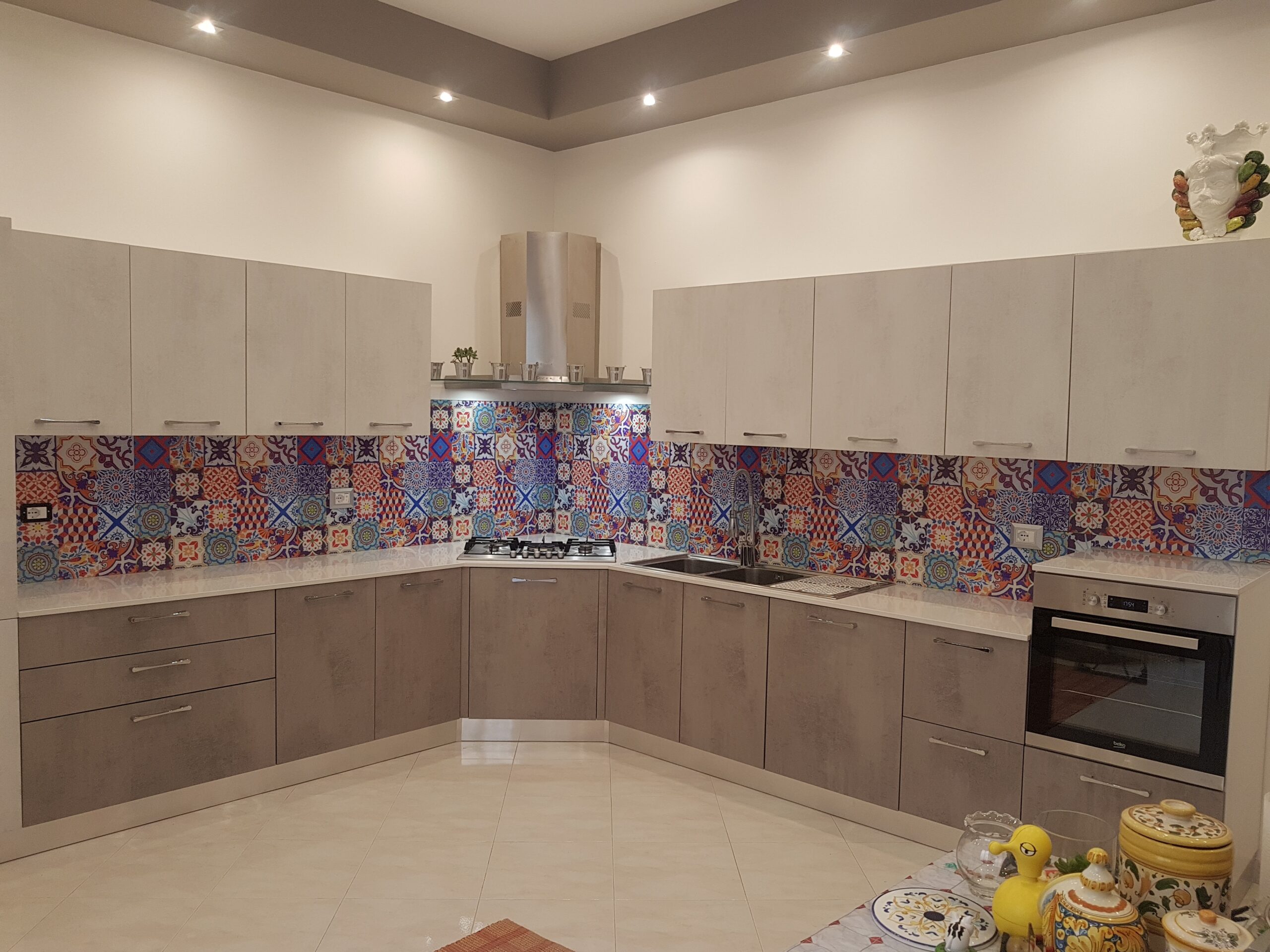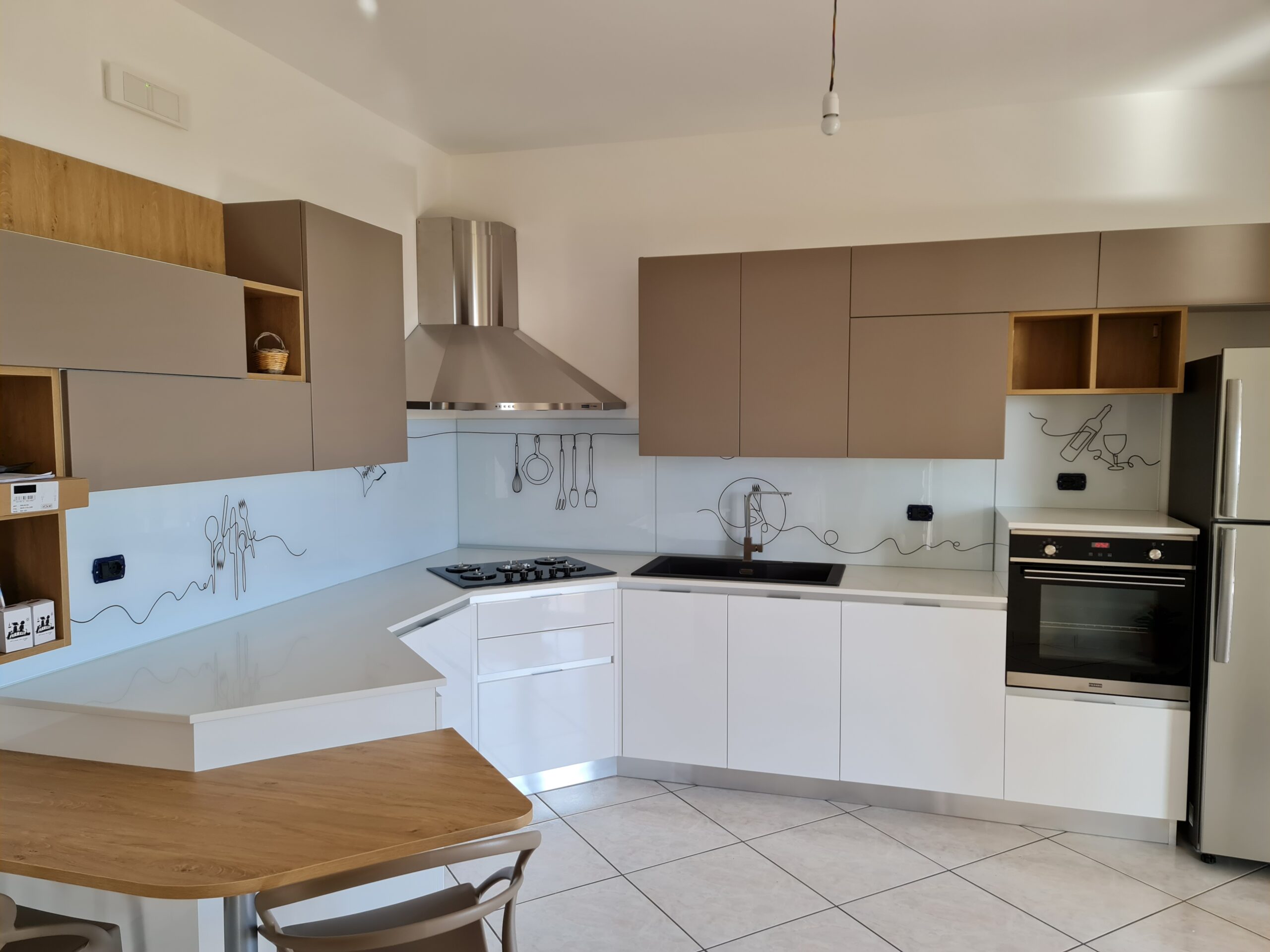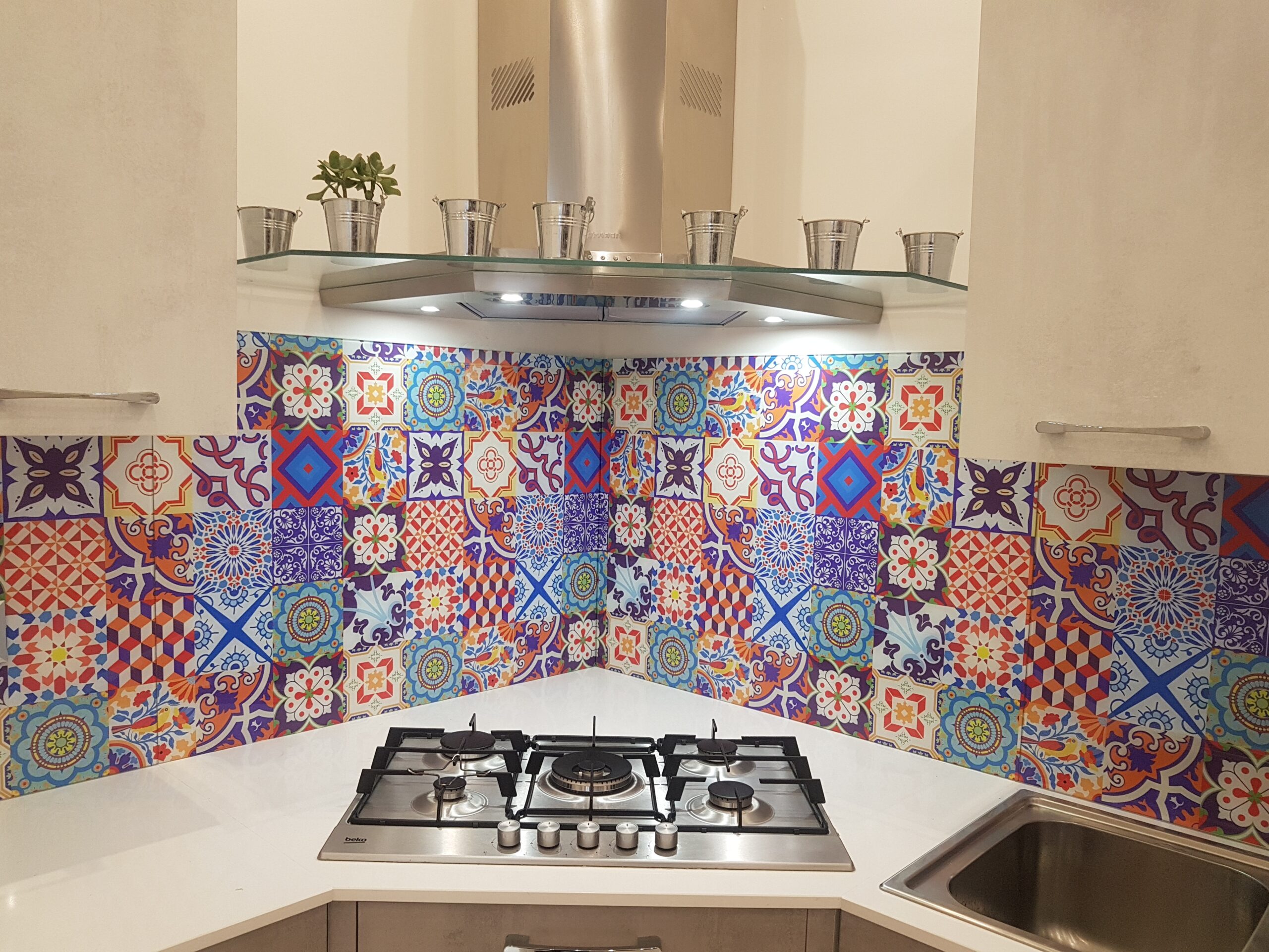 I rivestimenti in vetro temperato si distinguono per la loro superficie uniforme e senza fughe, che garantisce massima igiene e facilità di pulizia. Sono resistenti al calore e, soprattutto, completamente personalizzabili. Ogni pannello può essere sagomato su misura in base alla configurazione della tua cucina, integrandosi perfettamente con spazi, prese e piani di lavoro.